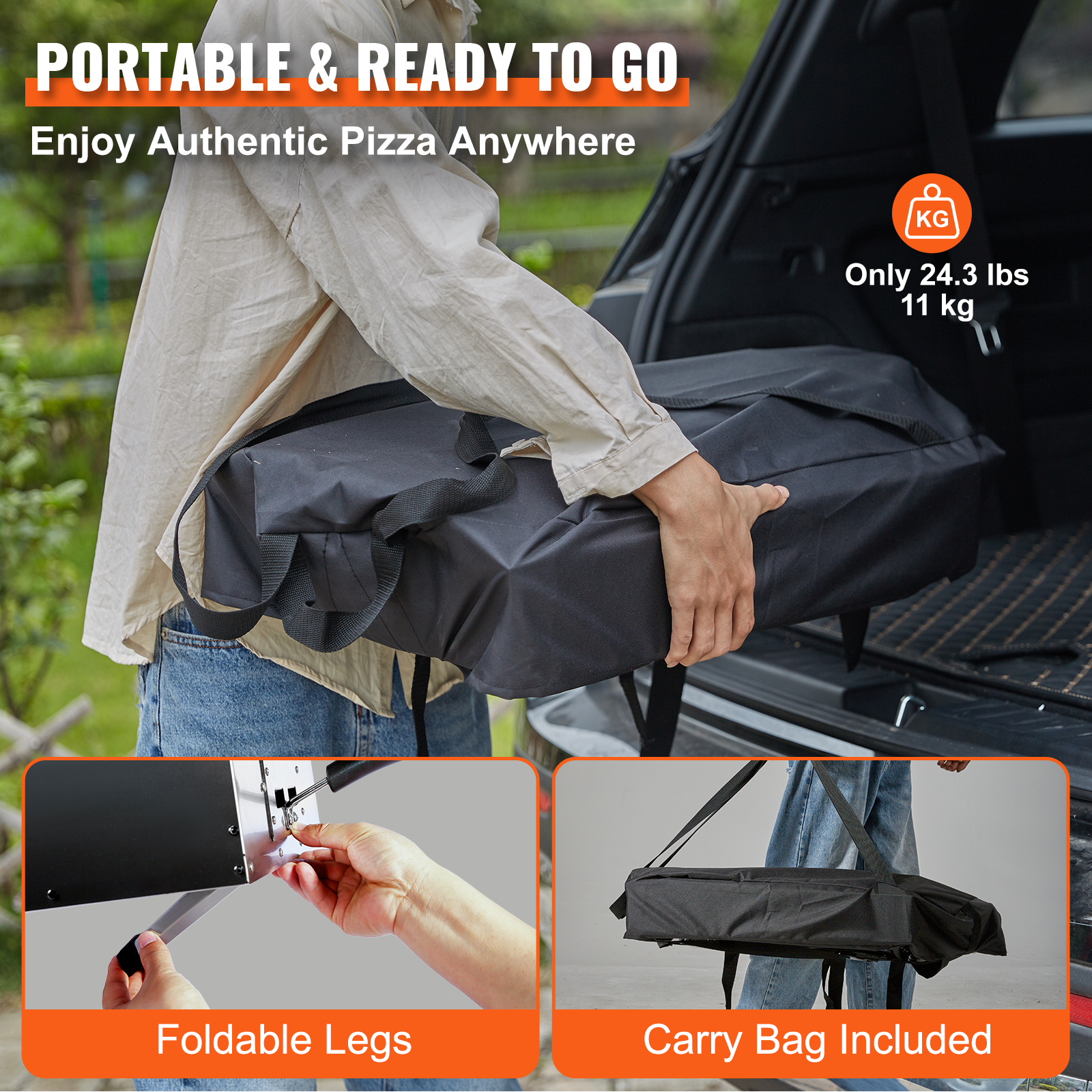 Document Product Description Feast On Your Life with VEVOR Pizza Oven Looking for an amazing addition to your backyard or outdoor gathering? Look no further than our gas and wood-fired pizza oven! With the ability to reach 1000℉ in just 15/20 minutes and bake a 12/13/16 inch pizza in only 90 seconds, you're sure to have a grand feast. Quick Cooking High Temperature Even Heating Multiple Fuels Premium Quality Portable Versatile Key Features Adjustable Chimney Cover The Type A and Type B outdoor pizza oven has an adjustable chimney cover to change the smoke exhaust direction. No more worrying about suffocating smoke. Rotatable Pizza Stone Our Type B and Type D portable pizza oven comes with a 10.5/13 mm thickened cordierite pizza stone. It can be manually rotated to heat pizza evenly and prevent burning. Fold and Go With foldable legs and a waterproof storage bag, you can take the portable outdoor pizza oven and enjoy authentic pizza anywhere, anytime. Here we will provide you with 4 types of Outdoor pizza oven for your option: 12in wood pellet, 12in gas and wood pellet, 13in gas, 16in gas. Features & Details Bake Like Never Before: Are you tired of pizza ovens that just don't do what they are supposed to? Our outdoor pizza oven heats up to 1000℉/540℃ in just 15/20 minutes and bakes a tasty 12/13/16 inch pizza in 90 seconds or less! Plus, it's versatile enough to cook all kinds of meats, fish, and delicious vegetables. More Fuel Options: Our portable pizza oven is designed with both wood and gas burners, so you can use wood pellets, wood chips, charcoal, or gas as fuels. Choose wood for a smoky, aromatic flavor or gas for low-maintenance cooking. With its large 480 g fuel tray, you'll need to feed it less often. Retain Heat for Extra Taste: The portable pizza oven for outside is CSA certified and built with 430 stainless steel inner frame, ceramic fiber insulation cotton, and cold-rolled sheet shell for enhanced quality. This 2/3-layer thermal insulation structure provides the best heat preservation, allowing you to enjoy your food quickly. Portable Outdoor Oven: This pizza oven boasts a lightweight 21.2/28.9/24.3/50.7 lbs, making it easy to carry to your backyard, campsite, beach, or any outdoor gathering place. Its foldable legs make it even more compact, and we also provide a wood pellets shovel and carry bag for added convenience. Become a Chef in No Time: Ready to use straight out of the box! Simply connect to a gas tank, turn on the gas, slide in the pizza, rotate the pizza stone to bake evenly, and enjoy delicious stone-baked pizza. Or simply fill the fuel tray with wood pellets, light a fire, slide in the pizza, turn it often, and enjoy delicious stone-baked pizza. Cooking outdoors with our portable outdoor pizza oven is that simple. SHIPPING ABOUT US PAYMENT RETURNS CONTACT WARRANTY Welcome to our eBay store. As a leading and emerging company in manufacturer and exporting business, we are specialized in Business and Industrial Products, Sporting Goods, Pet Products, Home and Garden products for more than 10 years. We believe that it is our vision and mission to provide innovative products with best service and competitive price to satisfy you. Our goal is to make sure that you can find exactly what you are looking for and make it easy for you to place your orders. We accept PayPal payment,PayPal Credit,Credit card or debit card and so on. Payment should be completed within 4 (Four) days of auction closing. Or unpaid dispute will be filed for closing auction. We will leave a positive feedback immediately after payment is received. We appreciate a positive feedback as much as you do. If for some reason there is any issue with the purchase, please contact us prior to leaving feedback, we will be glad to work together and provide a satisfying solution. Please be aware that PO Box cannot receive items, please DO NOT fill in the PO Box address. DELIVERY DAYS: 3-7 BUSINESS DAYS 3 BUSINESS DAYS SHIPPING OUT SHIP FROM CA & TX & NJ & GA & NC &OR WAREHOUSE California Warehouse: City of Industry, CA Texas Warehouse : Houston, TX New Jersey Warehouse : Perth Amboy, NJ New York State Warehouse: Perth Amboy, NJ Georgia Warehouse: Austell,GA North Carolina Warehouse: Grove NC Oregon Warehouse: AIRPORT WAY Portland,OR All of our items are backed with a 30-day return policy. We ensure all our items are new and in excellent condition prior to shipping. In case you receive the item that is not to the standards above, please contact us via e-Bay messages. All returns must be in new original condition as received and should be shipped with delivery confirmation Please note that all returns must be pre-approved by us. Unauthorized returns will not be accepted. If you need to return, please check twice to confirm the item not work and contact our customer service representative, let us know the detailed problem and send us some pictures for confirmation. We ONLY accept returns with original package. Please make sure that item has NO man-made sabotage. Used items will not be accepted for return. Email Customer Support: 9:00am-2:00am PST Sunday-Friday All emails will be responded to within 12-24 hours This item comes with 12 months Warranty from the date of customers purchased it. Special circumstances will be listed clearly in the listing. If your item has been damaged in transit or become faulty in warranty period, please email us with pictures or video to show the problem. Please do check everything carefully after you received the parcel, any the damage except DOA (Dead-On-Arrival) would not be covered if it's your fault. Replacement products are provided with the same warranty as the returned products. VEVOR is a leading brand that specializes in equipment and tools. Along with thousands of motivated employees, VEVOR is dedicated to providing our customers with tough equipment & tools at incredibly low prices. Today, VEVOR's products are sold in more than 200 countries and regions with 10 millio