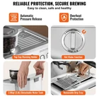 Craft Your Perfect Cup, Elevate Your Coffee Experience Experience coffee perfection with VEVOR espresso coffee machine. With built-in high-precision grinder, 30 customizable grinding settings, professional 15-bar pressure system, rapid preheating, 1/2 cup adjustable volume, and PID temperature control, ensuring top-notch coffee quality every time. Indulge in the essence of coffee perfection with our 15-bar high-pressure steam system, rapidly extracting the deep-seated richness, resulting in a thick and aromatic brew. PID temperature control make brewed coffee at an optimal 197℉, ensuring top-notch coffee quality. Achieve smooth milk froth effortlessly and master latte art with ease. Our espresso maker comes with an adjustable-angle steam wand, allowing you to create intricate designs effortlessly. We'll even include a milk cup for your convenient operation. Simple operation for beginners is made effortless with our cappuccino & latte machine, featuring a pressure gauge for easy real-time pressure monitoring. Indulge in elegant Italian coffee tasting with one-button quantified extraction, enabling you to brew 1 or 2 cups of espresso. 2.96qt / 2.8L detachable large-capacity water tank allows for brewing multiple cups without constant refills, while the detachable water drip tray simplifies cleaning. Additionally, the descaling function extends the machine's lifespan, ensuring long-term reliability and performance. Features & Details Built-in Grinder & Customizable Grinding: Featuring a built-in grinder and a generous 200g coffee bean hopper, VEVOR espresso machine allows you to go from beans to espresso in just a few minutes. With 30 grinding settings to choose from and 2 stainless steel filters (1 cup and 2 cups), you can easily tailor your coffee to your taste preferences. High-Pressure Extraction: Elevate your coffee experience with the 15 bar high-pressure espresso coffee maker, extracting high-quality coffee full of golden oil to enhance the aroma and richness. Rapid 35-second preheating and precise PID temperature control maintain the water temperature at an optimal 197℉ (92℃), delivering rich and authentic flavor. Powerful Milk Frother: Our semi automatic espresso coffee machine features a powerful steam wand for creating dense and smooth milk froth, enabling you to add personalized latte art to every cup. With the ability to switch between steam and hot water, it can also dispense hot water for brewing tea or other hot drinks. 1 & 2 Cup Function: VEVOR cappuccino latte machine comes with 2 filters for varying capacities: 1 cup (0.53-1.76oz) and 2 cups (1.58-3.17oz), catering to your brewing preferences. Simply press the single cup or double cup button on the control panel to complete brewing. Monitor the precise pressure with the pressure gauge to ensure optimal extraction. Safe and Thoughtful Designs: High safety is prioritized with automatic pressure release and dry heating protection. 2.96qt / 2.8L detachable large capacity water tank spare you the need for frequent refills ; detachable water drip tray makes cleaning effortless, while the descaling function extends machine's lifespan for long-term reliability.