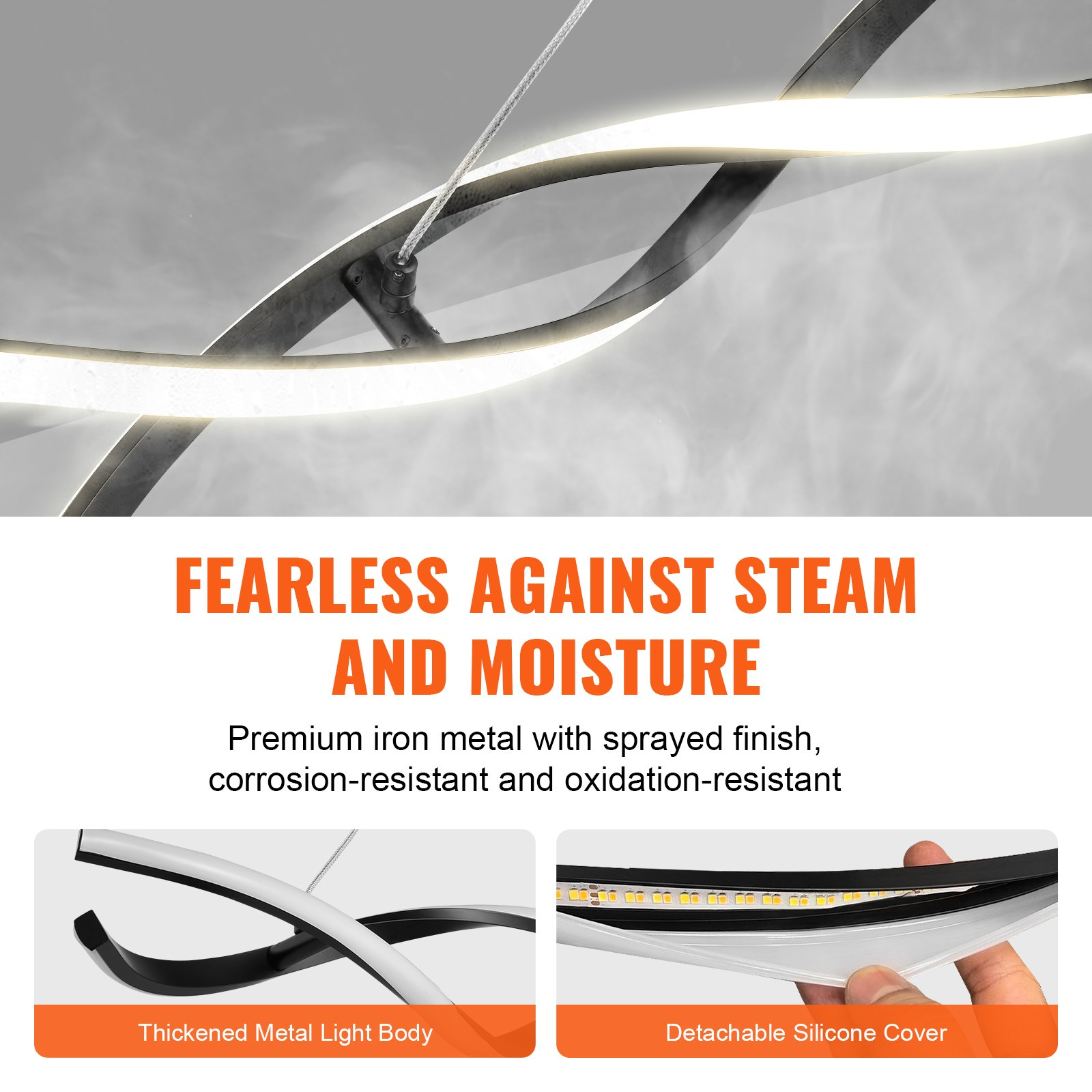 VEVOR Modern Chandelier Light Fixtures Dimmable LED Pendant Light Remote Control Soft Lighting Long Lifespan Quick Dimming Durability & Stability Easy Installation Excellent Heat Dissipation Item Model Number: THD1109A-2BK,Rated Power: 24W,Color Temperature Range: 3000K/4000K/6500K,Material: Metal (Sprayed Finish) + Detachable Silicone Cover (Lampshade),Net Weight: 2.7 lbs / 1.2 kg