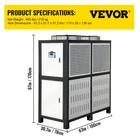 Document Product Description 15 Tons Air-cooled Industrial Chiller 15 HP & Stainless Steel Water Tank & Intelligent Guarding System An indoor unit with its own internal 2hp process pump. The closed-loop industrial chiller with its own internal insulated 150L reservoir. This chiller is ideal for indoor climate control conditions from 5℃ to 25℃. We have designed this chiller with you in mind. Don't overheat when you can beat the heat with our chiller. High-Performance Compressor Superior Cooling System Professional Protection System Smart Micro-Computer Control Easy Setup & Operation Please Note: If your shipping address is in Canada, please provide the correct phone number and customer broker information. If your shipping address is in the United States, please provide a correct phone number. Tough Equipment & Tools, Pay Less VEVOR is a leading brand that specializes in equipment and tools. Along with thousands of motivated employees, VEVOR is dedicated to providing our customers with tough equipment & tools at incredibly low prices. Today, VEVOR's products are sold in more than 200 countries and regions with 10 million plus members worldwide. Why Choose VEVOR? Premium Tough Quality Incredibly Low Prices Fast & Secure Delivery 30-Day Free Returns 24/7 Attentive Service Key Features Low Consumption Motor Panasonic compressor runs stably and reliably, has more energy and less vibration, with easy maintenance, and provides a long service life. Professional Finned Condenser The heat exchange tube of the condenser is aluminum foil and high-efficiency heat exchange red copper, ensuring large cooling air volume. High heat dissipating capacity. Smart Protection System The chiller contains 6 intelligent protection systems. Motor overload, coil overheating, and freeze-proof protection increase security. Precise LED Screen The aquarium chiller comes with a vivid panel for clear reading. You can control multiple functions with one button, saving time and effort. Effortless Setup & Operation Connect easily in a few steps according to the installation diagram. Our water cooler's inlet and outlet ports are made of brass for long-term corrosion-proof performance. Built-in Water Pump With a water pump, you don't need to prepare it yourself. We are providing more significant flow and greater remote use than similar tools. Specification Power: 220 V / 60Hz / 3P Regulate Temperature: 5℃ - 25℃ Condensation temperature: 45℃ Compressor type: Fully Enclosed Vortex Compressor Motor Power: 15HP / 11.25KW Tank Capacity: 150L Cooling Capacity: 45KW / 38700Kcal/h Heat Exchange Tube Material: Copper Fan Motor Power: 0.64KW Pump Power: 2.2KW Pump Motor Power: 2HP Net Weight: 1345 lbs / 610 kg Item Dimensions (L x W x H): 63 x 30.7 x 67 in / 160 x 78 x 170 cm Package Content 1 x Air-Cooled Chiller 1 x Manual Features & Details High-Performance Compressor: The portable chiller applies a 15HP Panasonic compressor that ensures the chiller will operate reliably and stably. Water flow is 7 m3/h, and the nominal diameter of the pipe inlet and outlet is DN50, less vibration and noise . The nominal diameter of the tap water inlet is DN15. Built-in 150L stainless steel water tank for your facilitated operation. Powerful Cooling: Our water chiller keep engraving machines up to 45KW cooling during use. Its 11.25 KW compressor can cool up to 38700 Kcal per hour. The 150L water tank is enclosed to reduce evaporation and provides long-term service between refills. Professional Protection System: Including an overload protector, high and low-pressure switch, electronic alarm prompt functions, automatic water replenishment. The environmental temperature must be less than or equal to 40℃. Smart Micro-Computer Control: Multi-functional control table includes intelligent LCD, microcomputer control, power buttons for compressor and condenser. A simple one-key rule makes operation convenient and efficient. The adjustable temperature ranges from 5℃ to 25℃. Versatile Application: The easy setup industrial chiller is widely used in electronics, electroplating, food, machinery, business card printing, and other industries. An air-cooled chiller can accurately control the temperature of a plastic forming mold to shorten the forming cycle and accelerate product setting. It is an essential piece of configuration equipment for modern industries. People Who Bought This Item Also Bought VEVOR 6 Ton Air-cooled Industrial Chiller Smart LCD 53L Tank Stainless Steel VEVOR 5 Ton Air-cooled Industrial Chiller LED Display Stainless Steel Water Tank VEVOR Evaporative Cooler Swamp Cooler 3-in-1 3100 CFM 9 Gal 12h Timer Humidifier VEVOR Evaporative Cooler Swamp Cooler 3-in-1 1400 CFM 5 Gal Air Humidifier Home VEVOR Evaporative Cooler Swamp Cooler 3-in-1 2100 CFM 7 Gal 12h Timer VEVOR Evaporative Cooler Swamp Cooler 3-in-1 3100 CFM 9 Gal 12h Timer Humidifier VEVOR Evaporative Cooler Swamp Cooler 3-in-1 1400 CFM 5 Gal Air Humidifier Home VEVOR 5 Ton Air-cooled Industrial Chiller LED Display Stainless Steel Water Tank VEVOR Evaporative Cooler Swamp Cooler 3-in-1 2100 CFM 7 Gal 12h Timer VEVOR 6 Ton Air-cooled Industrial Chiller Smart LCD 53L Tank Stainless Steel SHIPPING ABOUT US PAYMENT RETURNS CONTACT WARRANTY Welcome to our eBay store. As a leading and emerging company in manufacturer and exporting business, we are specialized in Business and Industrial Products, Sporting Goods, Pet Products, Home and Garden products for more than 10 years. We believe that it is our vision and mission to provide innovative products with best service and competitive price to satisfy you. Our goal is to make sure that you can find exactly what you are looking for and make it easy for you to place your orders. We accept PayPal payment,PayPal Credit,Credit card or debit card and so on. Payment should be completed within 4 (Four) days of auction closing. Or unpaid dispute will be filed for closing auction. We will leave a positive feedback immediately after payment 