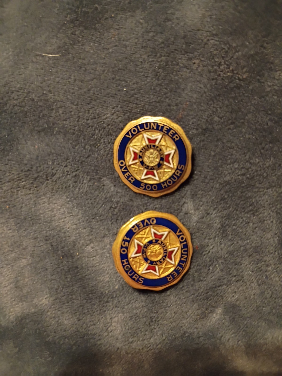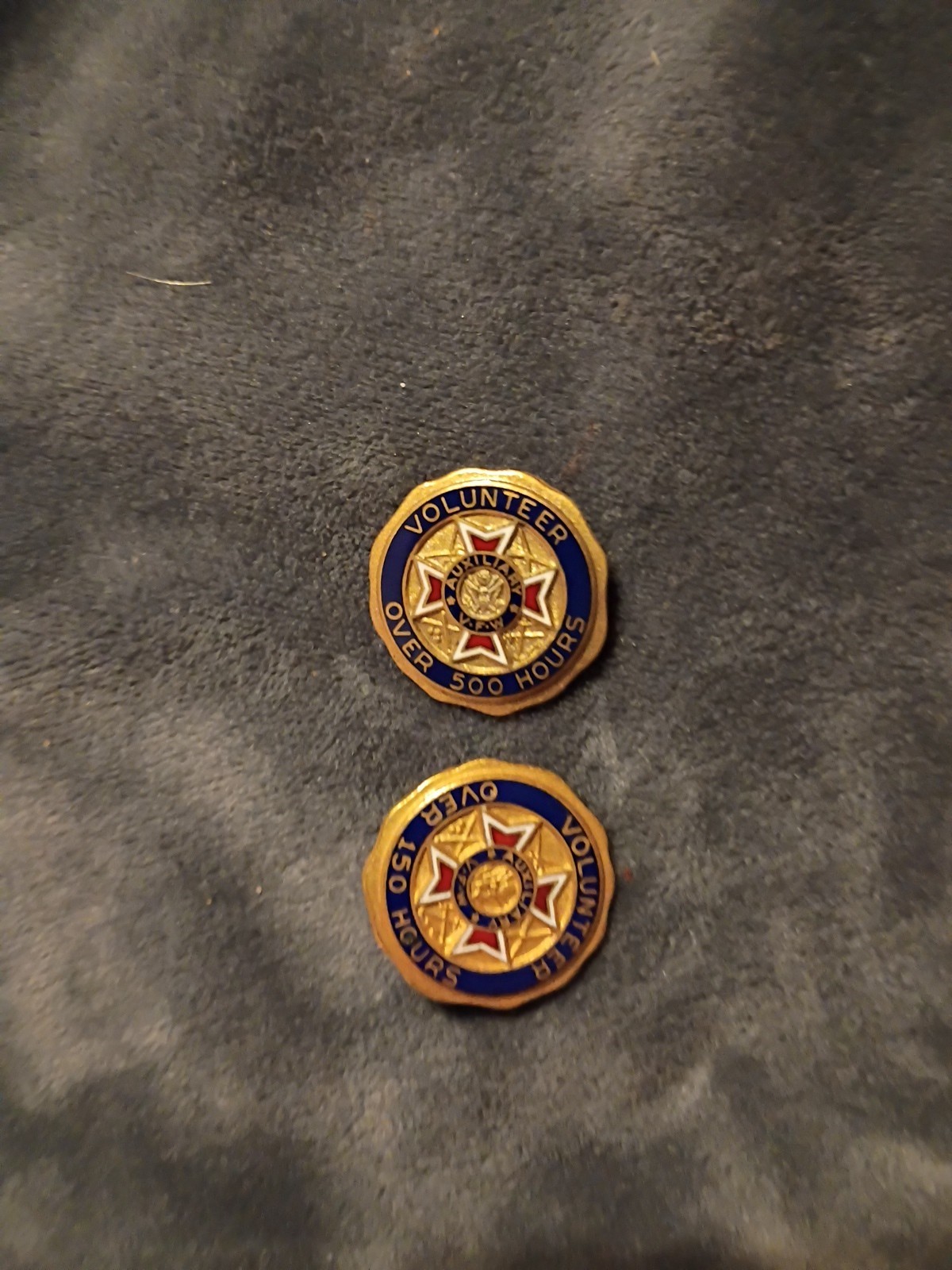 The VFW Auxiliary Volunteer Over 500 and 150 Hours Lapel Pin is a commemorative accessory for members of the Veterans of Foreign Wars organization. This lapel pin signifies the dedication and service of volunteers who have contributed over 500 and 150 hours to the organization, making it a meaningful collectible for veterans' groups. The design of the pin likely features symbolic representations of the VFW and its mission, serving as a cherished item for those who support and volunteer for the organization.