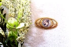 Up for sale is a beautiful brooch in the shape of a cameo brooch highlighted by an elegant woman in a gold tone frame and a white background. This pin measures approximately 1 3/8 inches by 2 3/8 inches. The pin has a locking bar type clasp on the back to hold the pin firmly in place. This item would be the perfect addition to any outfit! SHIPMENT TRACKING INCLUDED FOR ALL US DESTINATIONS This item is from a nonsmoking home. NOTE: Please read and fully understand the item description and the following paragraphs prior to bidding on this item. If you have any questions, please contact us via E-bay message before you place a bid. PAYMENT POLICY: Payment of the final auction price, listed shipping charges, and shipping insurance (if purchased) must be received within 7 days of the end of the auction. We prefer PayPal. SHIPPING CHARGES: Below is a list of our shipping charges, we automatically combine shipping costs on multiple purchases of jewelry or similar size items, we also combine shipping on different size items, please ask for a quote or wait for an invoice before paying for your multiple item order: US DESTINATIONS ................................ INTERNATIONAL DESTINATIONS $4.29 ......................................................... GLOBAL SHIPPING PROGRAM Add $0.50 for each additional item to US destinations. REMINDER: When purchasing more than one item, please wait for us to send you an invoice with the total price before paying for your items, this will ensure you receive the full benefit of our combined shipping. NOTE: These shipping charges are for US Postal Service First Class Mail to US destinations only; other shipping methods are available at an additional cost to the buyer (see the paragraph that outlines our shipping methods below). SHIPPING METHODS: We ship all items via US Postal Service First Class Mail to US destinations unless otherwise noted in the item description. US Postal Service Priority Mail or Express Mail may be requested and will be an additional cost to the buyer. Please contact us via E-bay message if you have any questions on shipping charges. SHIPPING PROMISE: We promise to ship your item within 24 hours of receipt of a cleared payment for items in which payment is received on Sunday through Thursday. For items in which payment is received on a Friday or Saturday, shipment will be on Monday, if Monday is a holiday these items will be shipped on Tuesday. (Due to the ever-increasing price of fuel, we can no longer ship items on weekends or holidays, the Post Office is too far away to make this feasible). Please remember that there may be times when it is not possible to ship an item with 24 hours, for these rare situations, we will notify you via E-bay message. SHIPPING INSURANCE: Not offered. RETURN POLICY: In the unlikely event that your item arrives damaged or is not as described or pictured in the auction listing, please contact us via E-bay message immediately upon item arrival and return the item to us within 30 days. Return shipping charges are the buyer's responsibility and will not be refunded. We reserve the right to inspect the item prior to shipping a replacement item or issuing a refund. If the results of our inspection of the item are favorable we will send you a replacement item identical to the auction listing for the item you purchased. If no replacement item is available and the results of our inspection of the item are favorable, we will issue a refund for the initial cost of the item and initial shipping charges. In the event our inspection of the item reveals damage or other misuse not normally caused by routine handling during shipping, we reserve the right to refuse to replace the item or grant a refund. GUARANTEE: We strive to provide the best possible service and merchandise at low starting bids, we also strive to ensure our buyers are satisfied with their purchase; finally we value our outstanding E-bay Feedback rating. If you are not satisfied with your item when it arrives or if there was a problem with the transaction, PLEASE contact us via E-bay message before you resort to leaving NEUTRAL or NEGATIVE feedback. We will do our best to resolve the situation to the satisfaction of both parties. As a reminder, not every situation can be resolved to the mutual satisfaction of both parties and we reserve the right to make the final determination in all such cases.