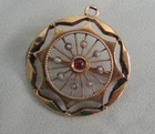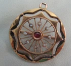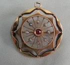 A VICTORIAN BEAUTIFUL BROOCH, AND OR PENDANT. IF WORN AS A PENDANT YOU WILL NEED TO ADD ANOTHER LITTLE JUMP RING AT TOP TO PROPERLY BALANCE THE PENDANT. BROOCH IN GOOD CONDITION. SIZE 1 1/8 INCH ROUND. IT'S A BEAUTY, ALL STONES ORIGINAL TO THE ITEM. MARKED 585 FOR 14KT MARK ON BACK. WT. 3,5 GRAMS