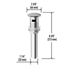 Update your bathroom with an advanced pop-up drain assembly with overflow. Crafted to fit 1.25-inch sink drain holes on bathroom sinks with overflows, this pretty fixture brings a fresh new look to your sink. A rubber seal ring on each side ensures a snug fit, and the drain is made from solid brass for long-wearing service life after installation backed up by a lifetime limited warranty from VIGO.Drain is designed for bath sinks with overflow Unique, sleek push-pop drainVIGO bathroom sink accessory is solid brass with chrome finishRubber seal ring on each sideFits 1.25 Free Shipping Over $49.99* Details VIGO 1.75" W Bathroom Sink Pop-Up Drain in Chrome Product Description: Update your bathroom with an advanced pop-up drain assembly with overflow. Crafted to fit 1.25-inch sink drain holes on bathroom sinks with overflows, this pretty fixture brings a fresh new look to your sink. A rubber seal ring on each side ensures a snug fit, and the drain is made from solid brass for long-wearing service life after installation backed up by a lifetime limited warranty from VIGO. Drain is designed for bath sinks with overflow Unique, sleek push-pop drain VIGO bathroom sink accessory is solid brass with chrome finish Rubber seal ring on each side Fits 1.25 inches sink drain hole Measures 9 inches tall x 2.5 inches in diameter
