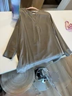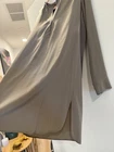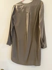 Vince 100% Silk Long Sleeve Collar Cuffed Shirt Dress Size 6 Earth Taupe Neutral tan beige Please see photos for condition. This is a pre owned item with some discoloring. No rips, holes or missing buttons. Stain might come out with dry cleaning / treatment. Pure silk shirt dress, hits right above the knee, flattering and classy elevated style.