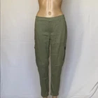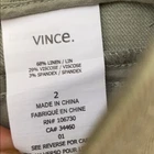 Vince linen blend tapered cargo pants in light khaki green 6 pockets Zip fly Elasticized at back bottom hem Ankle length Waist pants laying flat is approx. 14.5" Rise 9.5", Inseam 25" There is a small mark on the front near waistband , please see pic. 4,5. Overall pants are in very good condition Hello & Welcome! All sales are final! Pictures are the best part of the description for style/details. Please ask questions before buying, No cancellations. No returns. Read entire description and see all photos. Not responsible for fit . Please double check all measurements against a similar well-fitting garment. I do not accept returns for size. If you need any additional measurements please let me know BEFORE making your purchase. Measurements are approximate / colors may appear slightly different in person Thanks for looking! Check out my other great items, I will gladly combine shipping.