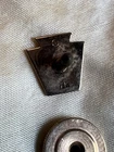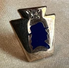 Keystone state lapel pin, hallmarked 10k gold with diamond accent. Weights 1 gram without the back, the back weighs .6 grams. The silhouette is a deep enamel blue, hard to capture the exact tone in a photograph.