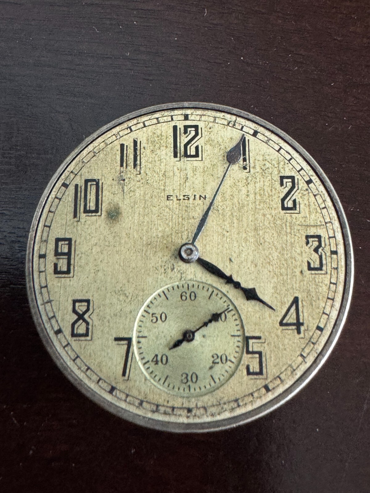VINTAGE 12 SIZE ELGIN POCKET WATCH MOVEMENT GR. 315 KEEPING TIME METAL DIAL. HAS WEAR Elgin National Watch Co. Grade: 315 Manufacturer: Elgin Manufacturer Location: Elgin, Illinois Movement Serial Number: 26123118 Grade: 315 Model: 3 Class: 114 Estimated Production Year: 1924 Run Quantity: 9,000 Grade/Model Run: 222 of 329 Grade/Model Total Production: 1,033,900 Size: 12s Jewels: 15j Jewel Setting: Screw-Set Movement Configuration: Openface Movement Finish: Nickel Movement Setting: Pendant Wind Mechanism: Pendant Plate: 3/4 Plate Double Roller: Yes Barrel: Going Balance Type: Expansion Balance Jewel Material: Ruby Train: Quick Regulator: Moseley Hairspring: Breguet Standard Dial Type: Single-Sunk Adjusted: No Railroad Grade: No U.S. Patents: 596407 , 77078 , 585025 Case: Various Run ID: 12340.315G222.12S2013.123M1007.O5527.P9410.15J3507 Data Research: 1927/1950 Elgin Serial List Database Version: v52.642