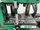 Vintage RCBS Green Machine inline progressive reloading press which was set up in .45 acp. The original owner made some modifications to it including upgrading to a Uniflow powder measure, tube primer feed, 8 ball handle and brass loading tubes. I t's out of adjustment or needs some TLC. Case advance is off a bit and it's not centering over the primer seater nor is it fully advancing the piece of brass I tested it with. Possibly the case holder bars are out as well. Case advance arm will jam if that lower adjuster bolt turns sideways. Powder measure is not actuating but maybe it needs brass to dump? The primer tube is very close to the new powder measure, not sure if there is a conflict when working the press. The case feed has a broken bottom plastic tube retainer and missing the top one. Plastic powder hopper has a crack but RCBS still has these available. Lee carbide sizing die and a Lyman seating die. Press #01252. You will need to disassemble, clean, lube and adjust to get it up and running. I will be listing more of these in the near future but different calibers .45 Colt, .44 Special/Magnum, .38 S&W, 9mm, and .357 Magnum. Please refer to images. This press is very heavy, in excess of 30 lbs. and will be partially disassembled for shipping which will be two insured Priority mail boxes. Pickup is an option but not listed on the shipment methods. Please feel free to discuss before purchase. Glad to combine freight when possible, please message me prior to paying for an invoice with combined freight amount. USA shipping only. Message any questions or for more images. Thanks for looking!