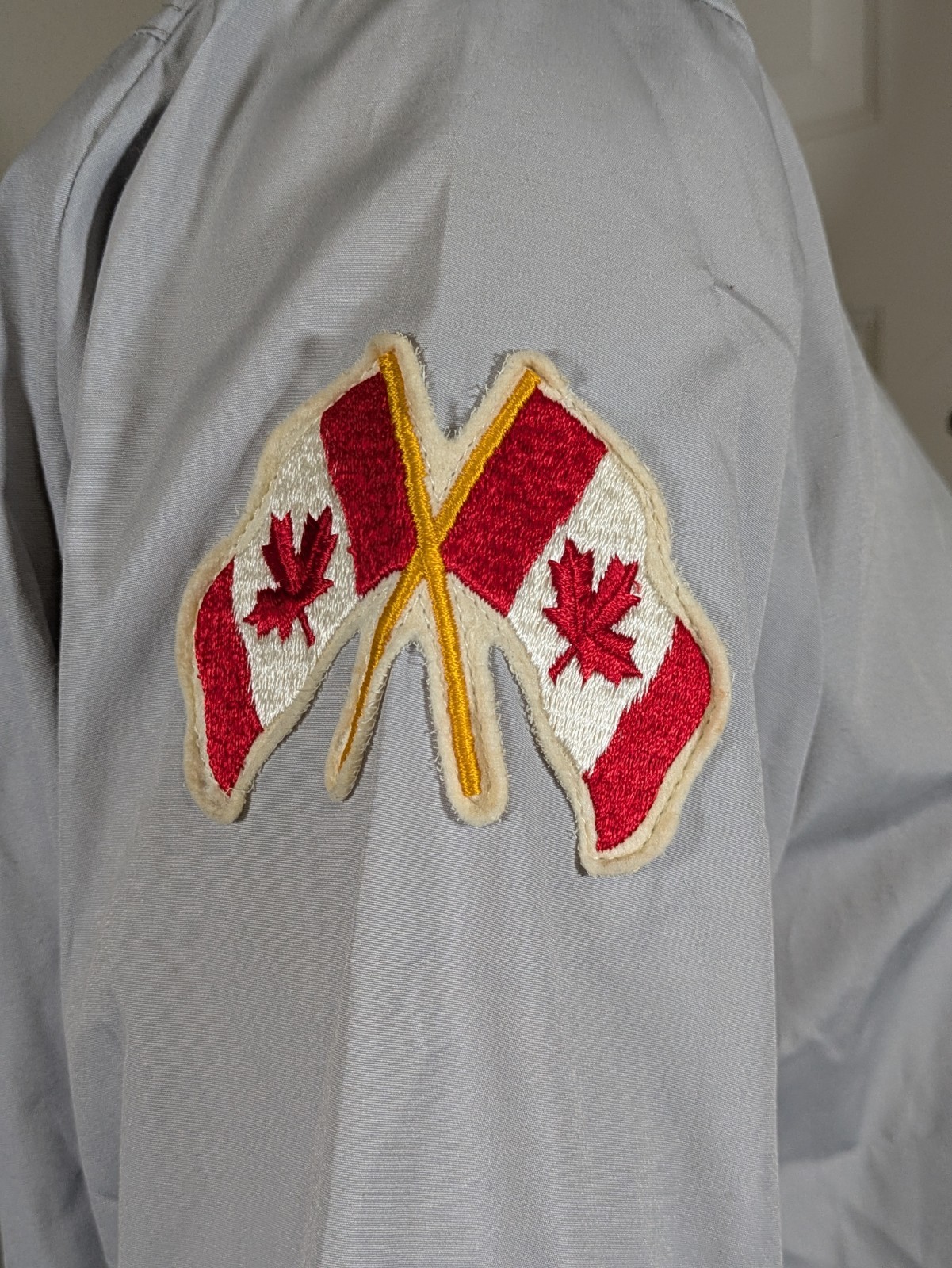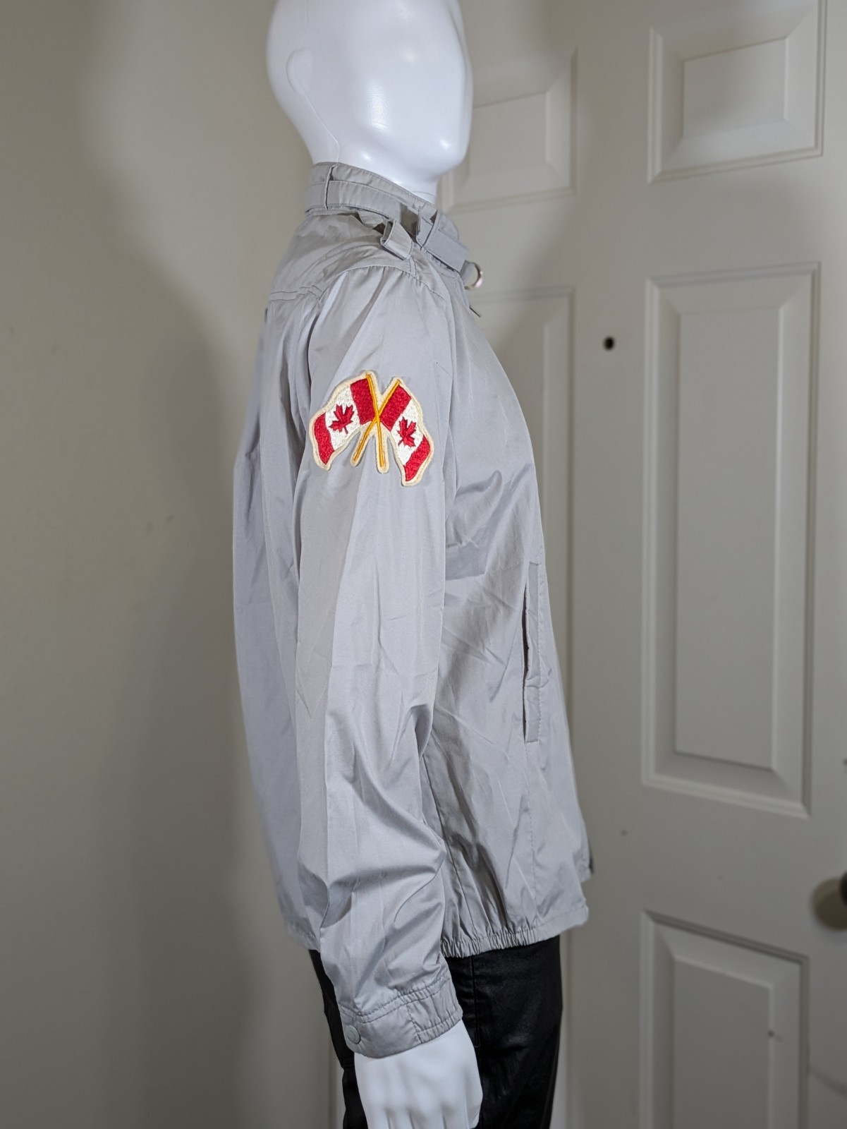 Item Specifics: Size: Medium (Pit to Pit: 24", Length: 27", Sleeve: 25") Year: 1984 (Los Angeles Olympic Games) Color: Light Gray Brand: Astro Sportswear (Toronto, Canada) Material: Fine Athletic Jacket construction (Dry Clean Only) Condition: Pre-owned, Excellent Vintage Condition Description: Own an incredible piece of broadcasting and Olympic history with this authentic 1984 Los Angeles Olympics CBC Sports Jacket. This jacket was custom-made for the Canadian Broadcasting Corporation's coverage of the Summer Games and features the legendary 1980s-era CBC "gem" logo. Provenance: Part of the elite professional sporting estate of Jimmy Hadder, a world-class technical official. Jimmy’s extensive career spanned multiple decades and international events, making this jacket a verified artifact from one of the most iconic Olympic Games ever held. Key Features: Official Olympic Embroidery: Detailed "CBC SPORTS Los Angeles '84" and Olympic rings embroidery on the left chest. Heritage Patch: Features a vintage crossed Canadian flag patch on the right sleeve, celebrating Canada's national pride during the games. Premium Construction: Made in Canada by Astro Sportswear, a specialist in high-end athletic jackets during the 80s. Classic 80s Styling: Features military-inspired epaulets on the shoulders, a full-zip front, and a clean, minimalist silhouette. Measurements (Lying Flat): Pit to Pit: 24 inches Length: 27 inches Sleeve: 25 inches Condition Note: This jacket is in remarkable condition for its age. The gray fabric is crisp and clean, and the embroidery remains bright and tight. No visible stains, holes, or major signs of wear. Stored in a smoke-free home. Shipping: Calculated shipping via USPS Ground Advantage