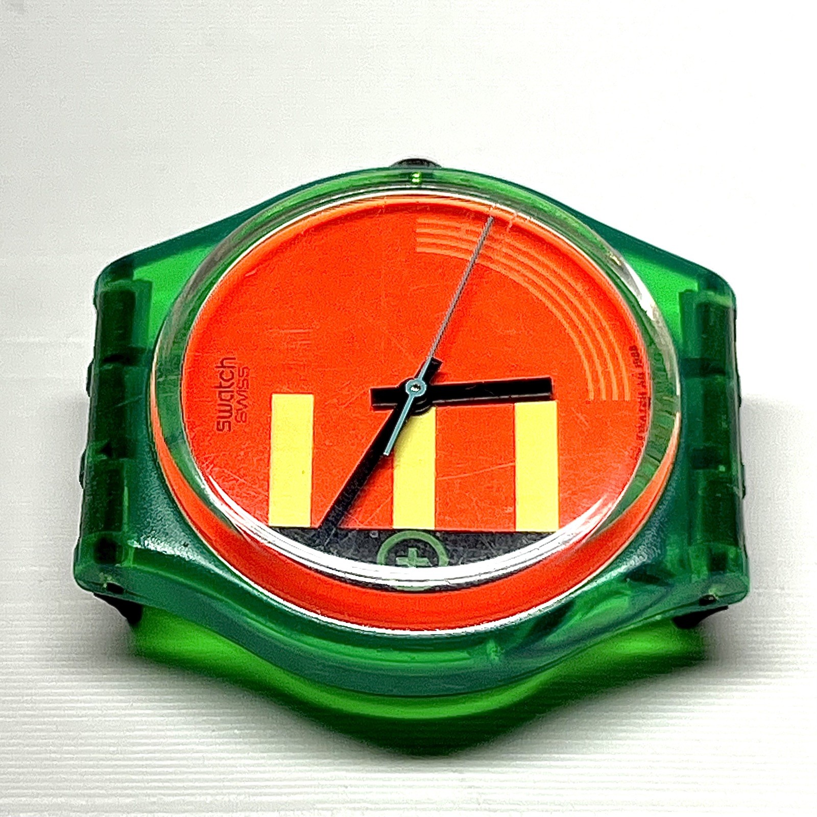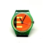 Vintage 1988 Swatch Watch Neon Rider Swiss made with quartz movement, water-resistant up to 30 meters for everyday wear. The watch comes without a band or battery included, making it ideal for collectors or enthusiasts looking for a piece to customize. DISCLAIMER * SOLD AS IS * Watch has not been tested * BATTERY NOT INCLUDED * The watch DOES NOT HAVE A BAND * visible imperfections and scratches * review all photos for condition * we use recycled shipping materials