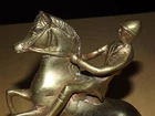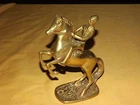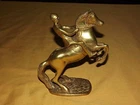 YOU ARE BIDDING ON...... VINTAGE 7 1/2" HIGH BRASS METAL HORSE & RIDER ....... ...MEASURES APPROX 7 1/2" HIGH..SHOWS DISPLAY/AGE WEAR..HAS SCRATCHES/PAINT LOSS/AGE DISCOLORATION........PLEASE VIEW PHOTOS FOR CONDITION.***PLEASE E-MAIL IF YOU HAVE A QUESTION OR WANT AN ADDITIONAL PICTURE....PLEASE VISIT MY EBAY STORE FOR ADDITIONAL VINTAGE ITEMS..THANK YOU*** BX7003-60-1483