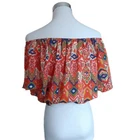 Lightweight beautiful vintage crop top! Vintage Y2K 2000s 90s In great condition! Tag is aged/faded some. Bright and colorful orange, blue and green throughout. Can be worn off-shoulder or on (see pics). Tag shows size small but fit is loose and airy. Could possibly fit size medium as well. I could not really show many measurements due to the kimono style sleeves (no regular bust seams). Vintage brand is: Top 10 USA Listing is for this one, single top only. Keywords: VTG Y2kshirt Y2ktop Retro 90's 2000's Boho Fairy Coquette Girly Sexy Beach Vacation WesternTrip Festival Photo Event School Used Preowned Sustainable Minimalist Dressy Smoke-free/pet-free home Color/texture may vary due to lighting/devices Items may show wrinkling from packing/transit ID:BU/3