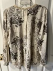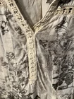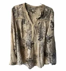 Vintage America tunic cream and brown. It has 3/4 sleeves that roll into tab sleeves and button up so you can have 3/4 sleeves or 1/2 sleevesV-neck. Made of 100% Rayon for the perfect fit! It is a super cute shirt. Flowy fit Small flaw: Loose stitch on the crochet edging. Size: large Underarm to Underarm: 23 inches Length from back neck hem: 27 inches