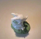 ADORABLE VINTAGE BONE CHINA WHITE BUNNY RABBIT WITH FLOWERS ON LAWN IN GOOD CONDITION. NO CHIPS OR BREAKS. 3" HIGH Discount on shipping on multi purchases ....