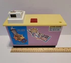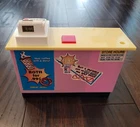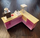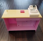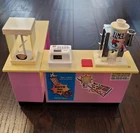 This is a vintage mini Mart by Mattel from 1997. It comes with 2 counters, a pretzel case, and an icee machine. The set is made of plastic and requires 3 AA batteries, which are included with purchase. It also has a light and sound feature, making it a great addition to any Barbie collection. Please note that this item is incomplete and missing some parts. However, it still works perfectly. It weighs 1.12 pounds and will be shipped in a box. This vintage set is perfect for collectors and Barbie enthusiasts alike. All pre-owned items have been washed, cleaned and checked for any imperfections. If anything is found, it will be duly noted in the listing and with photos. We charge real-time, calculated shipping rates on our products, and DO NOT add additional costs associated with shipping. If you're looking for combined shipping, we offer that, too. We also recycle clean packaging and boxes to help keep prices down and less going into a landfill. SSL-1874