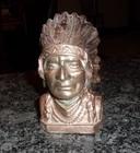 VINTAGE CAST METAL NATIVE AMERICAN INDIAN COIN BANK - COPPER PAINTED -