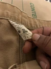 VINTAGE Carhartt Double Knee Pants in tan canvas with a 48x32 size, featuring a carpenter style and a loose original fit. These American-made pants have a high rise and a straight leg design, with accents like double knee and duck canvas. They are perfect for casual, workwear, or travel occasions, with a solid beige color and a classic 90s grunge theme. The pants include cargo pockets and a 5-pocket design, making them both practical and stylish.