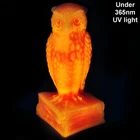 Up for auction is a RARE Degenhart slag glass owl in the color "Bloody Mary #2" (made in 1973). This color consists of cream custard glass with red and orange slag on top. This is a stunning color in person. It glows bright orange and red under a 365nm blacklight due to Cadmium and Selenium in the glass. It's in excellent condition with no flaws of any kind. It looks stunning in the sunlight. It stands 3.5 inches tall and has the Degenhart "D" embossed on the bottom of the figurine. Degenhart Glass made this owl from 1967 to 1978. The owl was permanently retired in 1978 and never made again. All pictures were taken in natural outdoor lighting. I'm a highly experienced glass shipper, so you can rest assured that your item will be very carefully wrapped and will arrive safely. Please read below for info on the blacklight/UV light I use and recommendations on the best way to view your owl under a blacklight. 1. What blacklight do you use? The blacklight I use is the Lumenshooter S3 that I purchased through Amazon. This has a 365nm wavelength which is the best for viewing the fluorescing properties of Cadmium, Manganese and Selenium. Uranium glows even brighter than normal with this blacklight. 2. Are 365nm and 395nm blacklights the same? The are not! :) A 395nm blacklight emits a violet light and creates a less intense glow. It is best suited for Uranium glass only. I highly recommend purchasing a blacklight with a 365nm wavelength, as they have the advantage of not emitting violet light, which can be a distraction and create a less intense glow. Most objects containing Cadmium, Manganese, Selenium and Uranium will fluoresce strongest under a 365nm black light. 3. What is the best way to view my Degenhart Owl under a blacklight? I recommend using a completely dark room or closet with no additional lighting that could be a distraction. This will give you the brightest glow possible. All UV pictures in my listings are taken in a completely dark closet with only my blacklight and my phone on the night setting. Thank you for looking and please let me know if you have any questions. :)