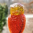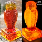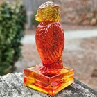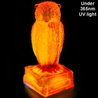 Up for auction is a vintage Degenhart slag glass owl in the color "Desert Sun Warmed in" (made in 1975). This color consists of a golden yellow with an intense orangish-red center. It was originally bought as "warmed in" because the red center was darker and covered more area than the regular "Desert Sun". It glows bright orange and red under a 365nm blacklight due to Cadmium and Selenium in the glass. It's in excellent condition with no flaws of any kind. It looks stunning in the sunlight. It stands 3.5 inches tall and has the Degenhart "D" embossed on the bottom of the figurine. Degenhart Glass made this owl from 1967 to 1978. The owl was permanently retired in 1978 and never made again. All pictures were taken in natural outdoor lighting. I'm a highly experienced glass shipper, so you can rest assured that your item will be very carefully wrapped and will arrive safely. Please read below for info on the blacklight/UV light I use and recommendations on the best way to view your owl under a blacklight. 1. What blacklight do you use? The blacklight I use is the Lumenshooter S3 that I purchased through Amazon. This has a 365nm wavelength which is the best for viewing the fluorescing properties of Cadmium, Manganese and Selenium. Uranium glows even brighter than normal with this blacklight. 2. Are 365nm and 395nm blacklights the same? The are not! :) A 395nm blacklight emits a violet light and creates a less intense glow. It is best suited for Uranium glass only. I highly recommend purchasing a blacklight with a 365nm wavelength, as they have the advantage of not emitting violet light, which can be a distraction and create a less intense glow. Most objects containing Cadmium, Manganese, Selenium and Uranium will fluoresce strongest under a 365nm black light. 3. What is the best way to view my Degenhart Owl under a blacklight? I recommend using a completely dark room or closet with no additional lighting that could be a distraction. This will give you the brightest glow possible. All UV pictures in my listings are taken in a completely dark closet with only my blacklight and my phone on the night setting. Thank you for looking and please let me know if you have any questions. :)