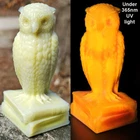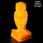 Up for auction is a Degenhart Cadmium glass owl in the color "Custard #1 (Light Custard)" (made on 12-23-1975). This is an opaque pale creamy yellow. It glows bright orange and yellow under a 365nm blacklight due to Cadmium and Selenium in the glass. It's in excellent condition with no flaws of any kind. It stands 3.5 inches tall and has the Degenhart "D" embossed on the bottom of the figurine. Degenhart Glass made this owl from 1967 to 1978. The owl was permanently retired in 1978 and never made again. All pictures were taken in natural outdoor lighting. I'm a highly experienced glass shipper, so you can rest assured that your item will be very carefully wrapped and will arrive safely. Please read below for info on the blacklight/UV light I use and recommendations on the best way to view your owl under a blacklight. 1. What blacklight do you use? The blacklight I use is the Lumenshooter S3 that I purchased through Amazon. This has a 365nm wavelength which is the best for viewing the fluorescing properties of Cadmium, Manganese and Selenium. Uranium glows even brighter than normal with this blacklight. 2. Are 365nm and 395nm blacklights the same? The are not! :) A 395nm blacklight emits a violet light and creates a less intense glow. It is best suited for Uranium glass only. I highly recommend purchasing a blacklight with a 365nm wavelength, as they have the advantage of not emitting violet light, which can be a distraction and create a less intense glow. Most objects containing Cadmium, Manganese, Selenium and Uranium will fluoresce strongest under a 365nm black light. 3. What is the best way to view my Degenhart Owl under a blacklight? I recommend using a completely dark room or closet with no additional lighting that could be a distraction. This will give you the brightest glow possible. All UV pictures in my listings are taken in a completely dark closet with only my blacklight and my phone on the night setting. Thank you for looking and please let me know if you have any questions. :)