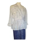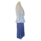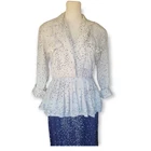 Dawn Joy Vintage Peplum Pencil Contrasting Polka Dot Dress Small Excellent pre-owned condition with no visible imperfections Brand: Dawn Joy Fashions Size: No size found but measures like a small/4-6 No materials tag Approximate flat laying measurements: Sleeve:16 Pit to pit: 18 Waist: 13.5 Length: 44 -Shoulder padding -Collared -V neck -3/4 Cuffed Sleeves -Two Chest pockets -Peplum Top -Fitted Pencil Skirt Bottom -Contrasting polka dot print -Side zipper Tags: vintage, interview, corporate, business, formal, office, work, suiting, suit