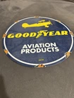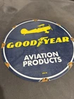 This vintage porcelain sign is a must-have for collectors of automobile parts and memorabilia. Featuring the iconic Goodyear logo, this sign is a great addition to any collection of advertising signs. Made in the United States, this preowned sign is a unique piece of history that will add character to any space. Perfect for fans of aviation and tires, this sign is a great way to show off your love for vintage advertising. The sign is made from high-quality porcelain, ensuring that it will last for years to come. Don't miss out on this one-of-a-kind piece of history!