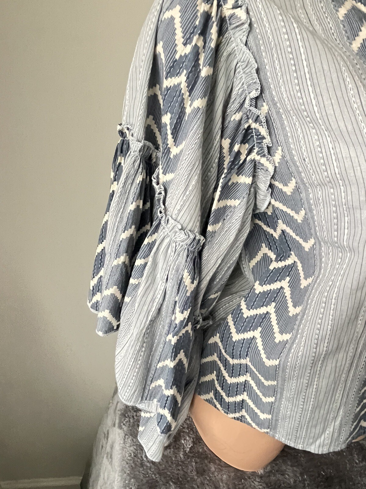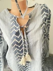 I am so glad to have found this seller & this beautiful Chico's Blue White Ikat Geo Print Top! It is just the color & style I was looking for, in excellent shape & fits perfectly! I highly recommend this seller - the Top was accurately described; plenty of pictures were included in the listing & were so helpful; very well packaged; reasonable price and shipping cost; arrived in perfect condition & shipping time - all outstanding! Thank you so much! :)
