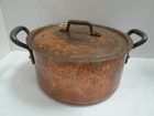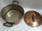 VINTAGE HEAVY BASE COPPER LIDDED POT PAN SAUCEPAN CAST IRON HANDLES GOOD QUALITY PAN 22 CM DIAMETER 10 CM HIGH GOOD CONDITION - COPPER HAS NOT BEEN POLISHED SEE PHOTOS FOR BEST GUIDE