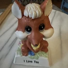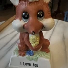 The vintage porcelain figurine from the 1979 Russ Berrie Collection features a fox design. This rare item is part of the "Love" collection and is marked with the number 813. Made in Taiwan, this figurine is crafted from porcelain and is a charming addition to any collection. Would make a sweet vintage Valentines gift! How can you resist the eyes…..
