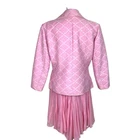 VINTAGE I.C.E. Women's Pink Brocade Jacket Sz 12 and Silk Skirt Sz 10 This is a GORGEOUS vintage suit with whimsical vibes. The Jacket (size 12) is trimmed with satin and the two front faux pockets have satin bows and is fully lined. The pink rhinestone flower buttons on the jacket add an element of pizazz!! The skirt is 100% silk, fully lined knife pleated and flowy. It has a side zipper closure. The skirt is a size 10. While the jacket and skirt are meant to be worn as a set, these two pieces will also compliment many other items in your closet for some fun stylish looks. The vintage pieces are in EXCELLENT Vintage Condition - please see all pictures. Please see all measurements below for exact sizing. Measurements: (flat lay) Jacket (measured buttoned closed) Chest (pit to pit): 20.5" Sleeve (shoulder to hem of sleeve): 20" Length (shoulder to hem of jacket): 21.5" Skirt: Waist: 16.75" Length (waistband to hem of skirt): 20.5" Materials: Jacket: Shell: 80% Cotton, 12% Polyester, 8% Nylon Lining: 100% Polyester Skirt: Shell: 100% Silk Lining: 100% Polyester Care: Dry Clean FAST SHIPPING Smoke Free Home Please reach out with any questions - I am always happy to answer!!