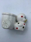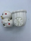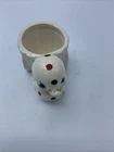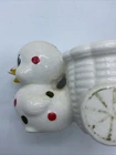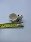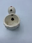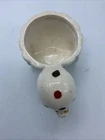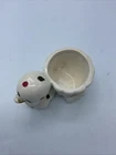 This vintage porcelain egg cup from Japan features a charming Easter duck design with a lustre glaze finish. Perfect for adding a touch of kitschy nostalgia to your table setting, this white egg cup is a delightful collectible that will brighten up any occasion. Please see pictures as there’s significant amount amount os glass cracking and discoloration please see pictures.