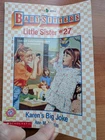 This lot of 9 vintage Babysitters Little Sister books by Ann M. Martin includes novels from the 1990s featuring the popular Babysitters Club Little Sisters series. This lot includes a mixed selection of 7 "Baby-Sitters Little Sister" books and 2 "Super Special" editions. The paperback books are in English and are targeted towards young readers interested in clubs and friendship stories. With a nostalgic feel and charming narrative, these books are sure to captivate fans of the Baby-Sitters Little Sister series. Book titles include: #24 Karen's School Trip, #26 Karen's Ducklings, #27 Karen's Big Joke, #28 Karen's Tea Party, #31 Karen's Bully, #32 Karen's Pumpkin Patch, #33 Karen's Secret, Super Special #4 Karen, Hannie, and Nancy, and Super Special #5 Karen's Baby. CONDITION: Pre-owned good to fair vintage condition. Covers show bending, some light scuffing, markings, bent areas, wear consistent with reading and age. Several books have a sticker on the lower left corner. Pages are securely fastened, bindings are solid; some light page bending. See pictures for condition details. When you purchase this item, you are supporting the Byron Township Friends of the Library. 100% of proceeds goes to the Byron Friends group, a non-profit organization helping to support library programming; materials and supplies; aesthetic and structural improvements; and much more, making the Byron Township Library an even greater place for adults, teens, and children to visit . The images are of the item you will receive. Shipping is done three times a week (Monday, Wednesday, and Friday). Every package is carefully wrapped and has a tracking number. Please note: Any charitable contribution amount is limited to the purchase price exceeding the fair market value. Feel free to ask us any questions about an item.