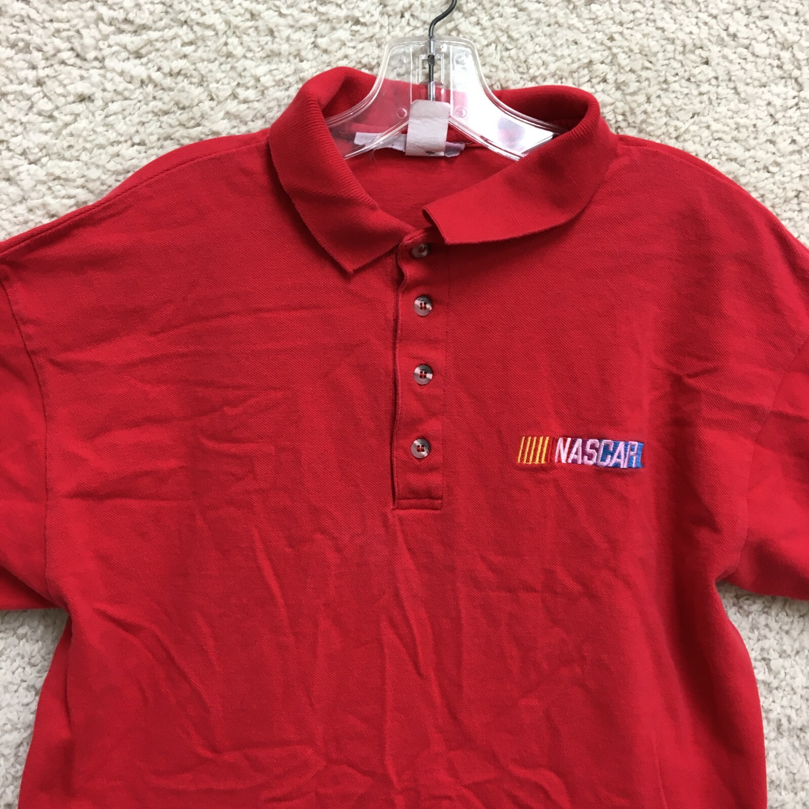 VINTAGE NASCAR Polo Shirt Large Adult Red Short Sleeve Modern Casual Mens L