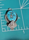 This vintage Navajo pendant features a unique asymmetrical amulet design crafted from sterling silver and set with a single oval turquoise gemstone. The pendant hangs from an 18-inch chain with a spring ring closure, in a style that exudes beauty and nature-inspired motifs. Handmade with a bezel setting, this unisex piece showcases Native American ethnic influences. Ideal for those who appreciate authentic tribal craftsmanship and timeless elegance in their jewelry collection. This piece is typical of the early Navajo Craftsman that doesn't waste money on stamps, therefore most Navajo jewelry is devoid of purity markings or trademarks. This is real authentic turquoise that appears to have traces of silver, and is hand etched .925 Sterling Silver, Tested positive for Sterling .925. Satisfaction Guaranteed or your money back! Umpqua Treasures Amy n Jeff