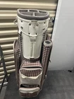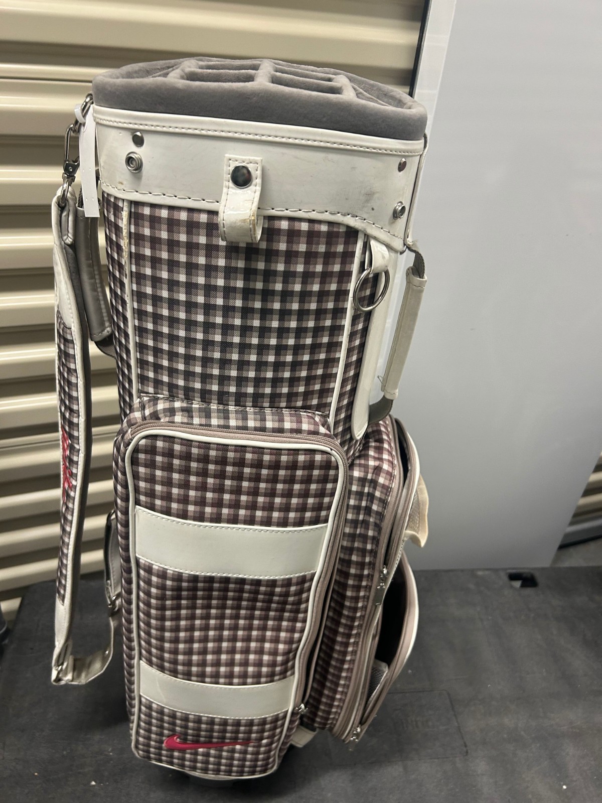 The Vintage Nike Designer Brassie Women's Cart Golf Bag is a stylish and functional accessory for female golfers. With a classic plaid design and the iconic Nike branding, this 10-way cart bag offers ample storage for golf clubs and equipment. Its sturdy construction and sleek silhouette make it a fashionable choice for any golf enthusiast looking for both quality and style on the course.