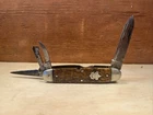 VINTAGE...1927/1932 REMINGTON (OFFICIAL BOY SCOUT) CAMP/UTILITY POCKET KNIFE. All BLADES, are made of CARBON STEEL. Both SETS of the BOLSTERS, SCALE PINS and BOY SCOUT SHIELD are made of NICKLE SILVER. The blade liners are made of BRASS.. This knife is missing the bottle opening blade. All blades snap pretty nicely. There’s a healthy amount of patina on this piece, I will leave it up to the buyer to decide what to do with it. Back handle has a chipped part missing. Emblem on front says “Be Prepared”. Needs to be sharpened. Weight is around 3.9 oz., Blade is 2 1/2 inches, Butt end to the blades tip is 6 inches. This vintage Remington RS3333 pocketknife is a stunning piece of history that any collector would be proud to own. With a bone handle and razor sharp carbon steel blades, this knife is both beautiful and functional. It is a vintage piece from 1924-1933, with a vintage look that offers a glimpse into the past. This Remington knife is the perfect addition to any collection and is sure to impress.
