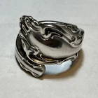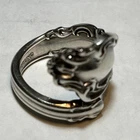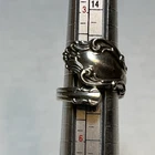 This is a vintage Reed & Barton sterling silver spoon ring in size 5.25, crafted from fine 925 silver in the United States. The ring features a wrap style design, making it unique and stylish for women who appreciate vintage jewelry. With its original authenticity and high-quality craftsmanship, this piece is a timeless addition to any fine jewelry collection.