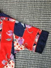 VINTAGE RUTH NORMAN SAKS FIFTH AVENUE CAFTAN MAXI DRESS RED WHITE BLUE PURPLE. Mandarin collar. It says petite on tag. I am size xl and tried it on. It does go on but it is not flowy as it should be. I think M/L, perhaps S if you like things a bit oversized. Front zipper. I think that they also considered this a hostess gown. Pattern is beautiful!