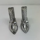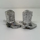 VINTAGE SALT & PEPPER SHAKERS Western Boots Set Silver Shoes