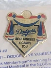This vintage pin is a must-have for any Los Angeles Dodgers fan. Featuring the iconic team logo and commemorating the 1981 World Series matchup against the Yankees, this pin is a true collector's item. It is officially licensed, original, and has been well-preserved over the years, making it an excellent addition to any sports memorabilia collection. The pin is made by Unocal and is part of the SGA collection. It is a great find for vintage sports enthusiasts and is sure to spark conversation. Don't miss out on the opportunity to own a piece of baseball history.
