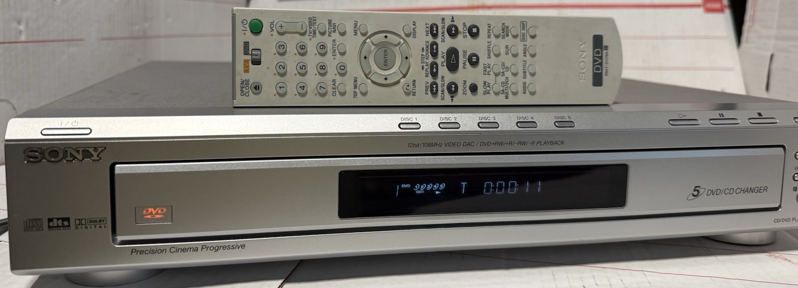 VINTAGE SONY DVP-NC60P DVD/ CD PLAYER / 5 DISC CHANGER W/ ORIGINAL CONTROL COMPACT DISC DVD THIS CD PLAYER CHANGER COMES W/ THE ORIGINAL REMOTE CONTROL. TESTED SOUNDS GREAT! -VERY GOOD CONDITION. MINOR WEAR OTHERWISE LOOKS GREAT. THERE ARE SOME VERY MINOR SCUFFS . (PLEASE SEE ALL PHOTOS.) OTHER THEN THAT, VERY GOOD CONDITION. THIS CD PLAYER HAS BEEN TESTED AND WORKS AS IT SHOULD AND SOUNDS GREAT. (PLEASE SEE ALL PHOTOS.) THIS SET DOES COME W/ THE ORIGINAL REMOTE CONTROL.. THIS SET COMES WITH EVERYTHING PICTURED. T HIS WAS RARELY USED AND IS IN VERY GOOD CONDITION and DOES COME WITH a REMOTE CONTROL. TRULY SOUNDS GREAT WITH A TON OF DETAIL FOR ANY AUDIOPHILE OR MUSIC LOVER. -VERY GOOD CONDITION. MINOR WEAR OTHERWISE LOOKS GREAT. THERE ARE SOME VERY MINOR SCUFFS . (PLEASE SEE ALL PHOTOS.) OTHER THEN THAT, VERY GOOD CONDITION. SHIPPING TO LOWER 48 STATES ONLY. CANNOT SHIP TO ALASKA, HAWAII, OR PUERTO RICO. I will get this delivered to you ASAP. It will be shipped out same day or next business day. Thanks for looking!!! Please take a look at my other Auction listings:) Have a great day:)