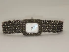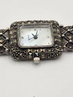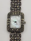 VINTAGE STERLING SILVER SPARKLE MARCASITE STONE MOP LADY FANCY BRACELET WATCH