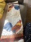 Beautiful vintage old stock, but new kitchen towel by Steven Lennon featuring a rooster on our fence behind a wired cage pattern new with tags very very faint discoloration at the very bottom from storage over the time but very, very faint