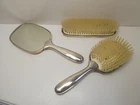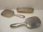 VINTAGE VANITY BRUSH MIRROR DRESSING SET EPNS SILVER PLATED HAMMERED FINISH GOOD USED CONDITION GENERAL WEAR CONSISTENT WITH AGE - SOME DENTS - MISSING A PIN ON CLOTHES BRUSH SEE PHOTOS FOR BEST GUIDE TO SIZE AND CONDITION
