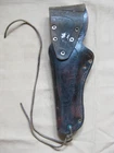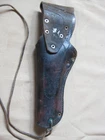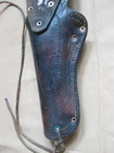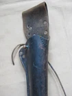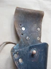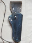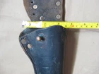 Vintage Vietnam War leather holster. This was a .45 Auto holster that has been in-country modified into a cowboy style holster for some revolver. Interesting piece for someone that likes theater made or modified items. See picture with tape measure for sizing. Shows use, wear and age. Examine all 14 pictures (they enlarge), they are part of the item description and shows the condition and details of the item. Contact me with any questions. Payment must be received within 2 days. Sold as-is, no returns. (Measure not included.) Thanks for looking and please check our other listings.