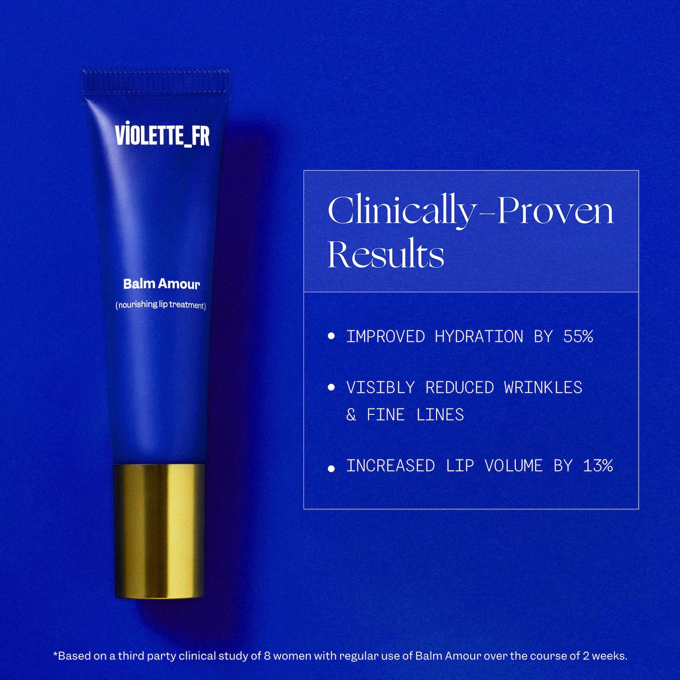 What it is: A zero-compromise balm-meets-treatment that thoroughly hydrates, visibly smooths, and restores lips with skincare-grade actives. Formulation: Balm Highlighted Ingredients: - Vitamin E and Peptides: Nourishing antioxidants. - Lupin Seed: Stimulates collagen production. - Cocoa Butter: Barrier-building moisture. Ingredient Callouts: This product is cruelty-free. What Else You Need to Know: Balm Amour is VIOLETTE_FR’s nourishing, regenerative balm powered by lip-repairing peptides, phyto-collagen activator, and moisture-locking butters to instantly smooth, hydrate, and soften—while restoring elasticity and strengthening the barrier over time for visibly fuller, healthier lips. Clinical Results: Based on a self-reported survey of 30 women, ages 23 to 75, evaluated by a dermatologist before and after testing: - After first use, 100% reported relief and comfort from chapped lips, smoother lips, and more moisturized lips - After 2 weeks, 100% reported soothed and relieved irritation, lasting hydration, and smooth, softer lips - 97% of users reported fuller-looking lips Based on a third-party clinical study of 8 women with regular use of Balm Amour over the course of 2 weeks: - Improved hydration by 55% - Increased lip volume by 13% - Visibly reduced wrinkles and fine lines