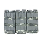 The Vism Triple Magazine pouch, This system makes it possible to keep your rig very low profile by allowing the user to use much less MOLLE space. This pouch is made from high quality nylon and features a bungee cord securing system to reliably hold all 3 rifle magazines. The rear of the pouch features MOLLE straps and webbing allowing the user to mount the pouch to any MOLLE platform reliably. Holds 3 Tactical Rifle Magazines, universal most sizes Adjustable Bungee Style Retention Straps make Access to your Magazines easy while securely holding them in place. PALS Webbing on Front to Stack Additional Pouches or Accessories. PALS Straps to attach it to your Tactical Vest, Backpack, or Compatible Rifle Cases