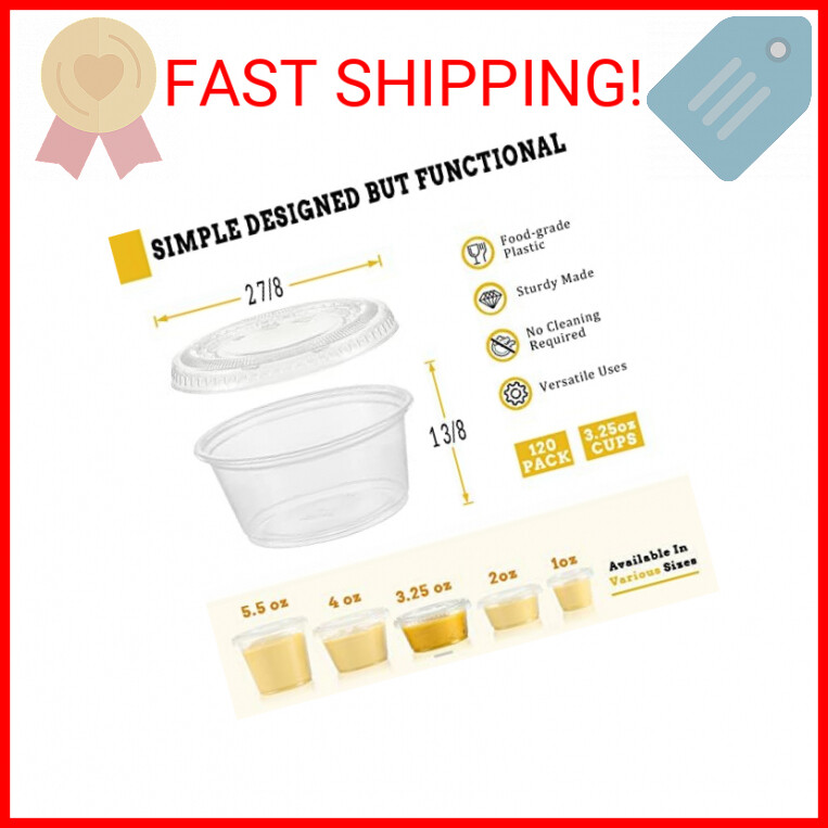 Welcome VITEVER [120 Sets - 3.25 oz ] Portion Cups With Lids, Small Plastic Containers with Lids, Airtight and Stackable Souffle Cups, Jello Shot Cups, Sauce Cups, Condiment Cups for Lunch, Party, Trips - Value Pack Portion Cups - This package comes with 120 sets of cups and airtight lids ,quantities at a great budget, 3.25 oz disposable portion container provide the perfect portion for any purpose. A simple and convenient way to pack school lunches or goodies for long car rides. - Leak-proof & Airtight Lids - Lids fit tightly with container cups, to keep food fresh and prevent leaks. The audible snap closure is there to assure you that the lid is sealed. Perfect for packing and storing, as well as easy to carry out. - Stackable & Save Space - These small portion cups with lids are stackable, Save space when you store them and freeze them. Cups and lids come in separate bags in a box for easy storage and access. - Durable & Crack Resistant - Our jello cups made of food-grade, crystal clear, bpa-free, crack-resistant PP plastic, these lids are made of high quality PET plastic to ensures strength, flexibility and airtight. - Multi-Purpose - The clear containers are perfect size for souffle, samples, jello shots, condiments, salad dressing, yogurt, and more!Great use for in-house or commercial use takeout service in your kitchen, parties, restaurants, buffets, and catered events. The Fine Print Payments We accept the following payment methods: eBay Managed Payments Please pay as soon as possible after winning an auction, this will allow for quicker shipping times! Returns We accept returns. You can return unopened items in the original packaging within 30 days of your purchase with receipt or proof of purchase. If 14 days or more have passed since your purchase, we cannot offer you a refund or an exchange. Upon receipt of the returned item, we will fully examine it and notify you via email, within a reasonable period of time, whether you are entitled to a return. If you are entitled to a return, we will refund your purchase price and a credit will automatically be applied to your original method of payment. Only regular priced items may be refunded. Sale items are non-refundable. Shipping Shipment processing time All orders are processed within 2-3 business days. Orders are not shipped or delivered on weekends or holidays. If we are experiencing a high volume of orders, shipments may be delayed by a few days. Please allow additional days in transit for delivery. If there will be a significant delay in shipment of your order, we will contact you via email or telephone. Shipping rates & delivery estimates Shipping charges for your order will be calculated and displayed at checkout.