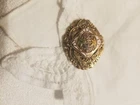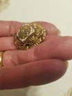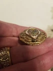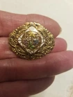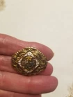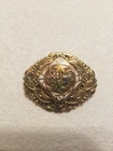 Stunning workmanship makes this Victorian era brooch all the more beautiful. The highly adorned top of this brooch is decorated with enameled blue, white and pink flowers and green leaves. The brooch has a wonderful 3 dimensional look to it. The top being highly decorated with enameled flowers sitting on top of layers of gold to accent the brooch. Wonderful texturing and scroll work set this brooch apart from others. It could be described as Ornate, Gothic, Revival, Victorian, or Art Deco. This unique brooch would be a great piece to wear on just about any occasion! This is the only piece I have seen like this. This wonderful brooch displays scroll work, etching and a raised center enameled design of great intricacy. The shield shape is raised for a three dimensional look. Although the gold content is not marked, it has been tested for 14K gold. This brooch is clearly made in a Revivalist style, popular in the mid Victorian (Grand) period, 1861-1879. The brooch has a hinge on the pin stem. Wonderful articulated shapes and textures come together to form this wonderful shield shaped pendant brooch. Measures: 1 and 3/8" by 1" Weight: 13.19 grams Excellent condition *This piece is an amazing example of vintage jewelry. Victorian Etruscan Revival 14Kt Gold Pendant Brooch with Enamel decoration and intricate craftsmanship throughout. Victorian Shield Brooch Gold Estate Jewelry